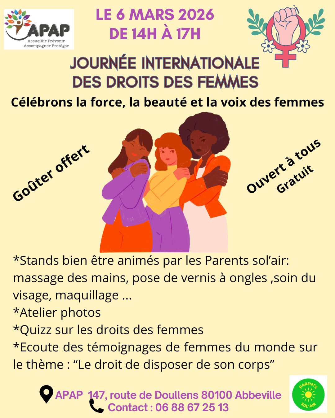 L’APAP 80 se mobilise sur deux territoires à l’occasion de la Journée des droits des femmes :