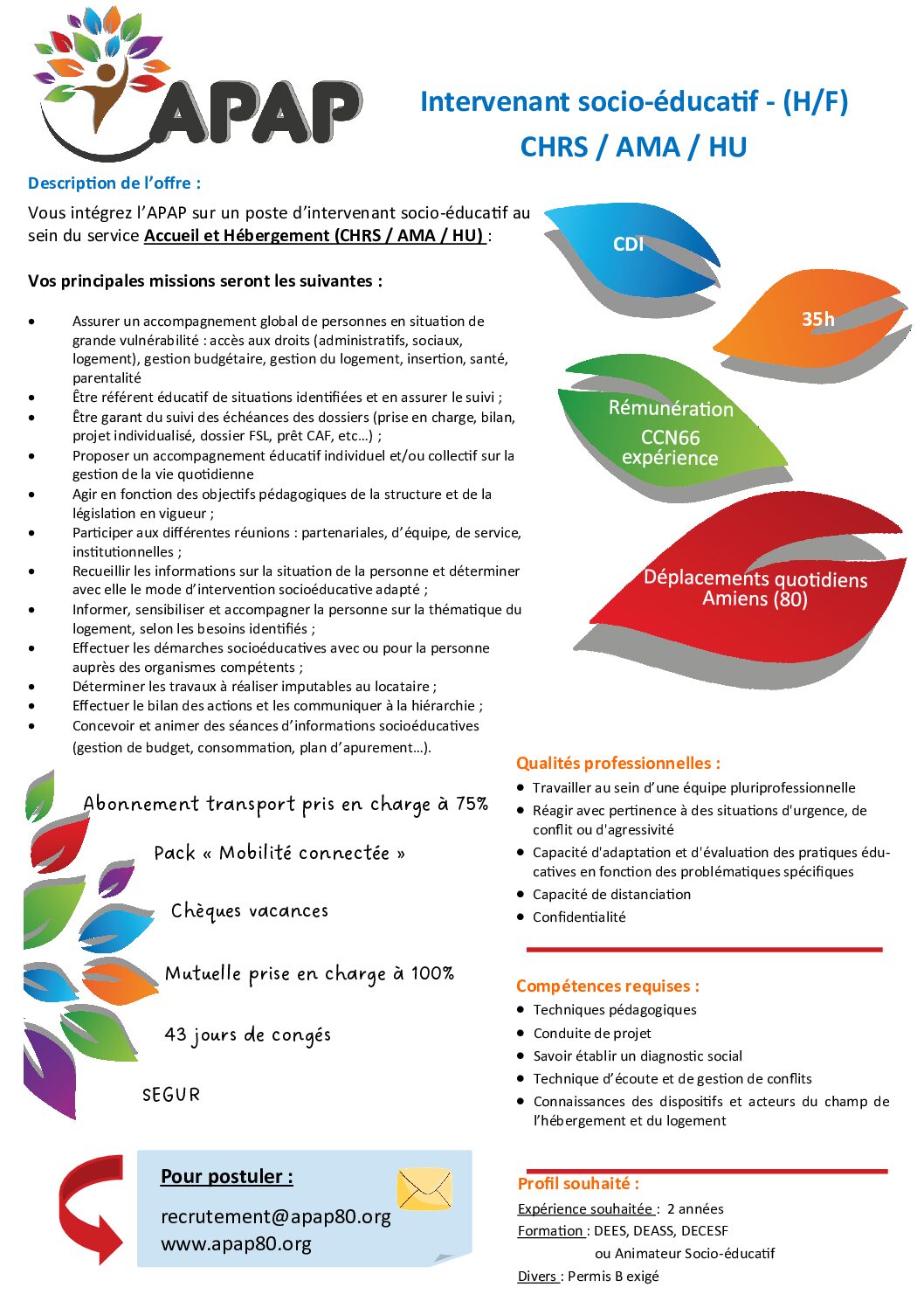 Travailleur social en CDI (H/F) – Accueil et Hébergement (CHRS / AMA / HU)